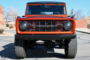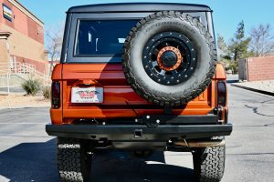 ‘Red Hills Rods & Classics’ is extremely happy to offer you this absolutely gorgeous 1976 Ford Bronco Restomod, which underwent a professional no-expense spared frame-off restoration in 2022. The final result is a masterful creation that will put a huge smile on any true Bronco fanatic’s face! This ’76 Bronco in its original form was a no-damage vehicle in quite good condition w/ very little rust to start with. The builders did an outstanding job w/ all of the metal work, as all body panels are laser straight w/ precise body-gaps throughout. The vehicle was reassembled using all new wiring, plumbing, etc. w/ all new components used throughout. NO used parts were used whatsoever. When the bodywork was completed, the Bronco was lathered in Mango Tango Pearl PPG paint, which looks outstanding on this vehicle. Tinted glass was installed all the way around, and the original hardtop was painted in a shade of Gun Metal Gray, which looks excellent in contrast to the Mango Tango Pearl. A Wild Horses grille & Wild Horses LED headlights were added up front, and new Protofab bumpers were installed on the front & rear, which are beefy and look excellent. A new Protofab tow package & Protofab spare tire carrier were also added to the vehicle. This gorgeous Bronco rolls on KMC XD137 wheels (17” x 9”), wrapped w/ BF Goodrich All Terrain T/A tires (LT285/75/R17). She sits just right w/ a mean stance, and ominous appearance. You can walk around this vehicle a hundred times and she looks perfect from every angle. Peek underneath and you will see a beautifully detailed undercarriage, featuring a Wild Horses 2.5” lift, Bilstein shock absorbers, Hellwig sway bars (front & rear), custom stainless-steel exhaust, and a new 23-gallon fuel tank. Again, all brand new components were used throughout the entire build.