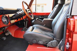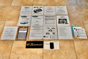 Pop open the hood and inside the spotless painted engine bay resides a new Ford GT40P 5.0 V8 crate motor, featuring black Ford Racing valve covers, topped w/ a Holley Sniper fuel injection system (EFI) w/ a black finned Holley air cleaner assembly. Other features include: MSD electronic ignition, chrome headers, power steering, power brakes w/ front disc brakes, Vintage Air Gen IV air conditioning, and an aluminum triple-pass radiator. The motor is linked to a new Ford 4R70W 6-speed electronic automatic transmission, which feeds power to the Ford 9” rear end w/ 3.50 gear ratio. The motor fires up instantly w/ the push of a button, settling into a nice smooth idle, and runs beautifully in every way. This Bronco is a blast to drive and will get more attention than you have ever had in your life. Anywhere that you decide to go, there will be folks gathered around snapping photos on their smartphones. The new owner will receive the original 1976 Ford Bronco owner’s manual, various component owner manuals, vehicle appraisal report, and (2) key fobs.