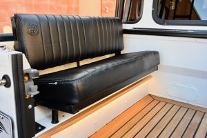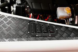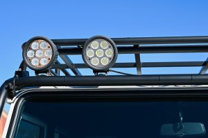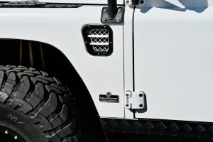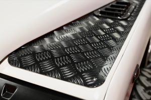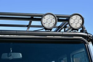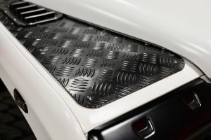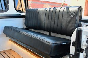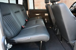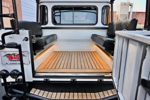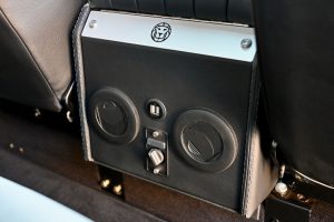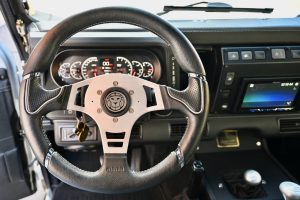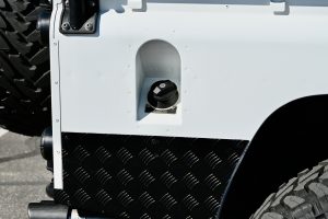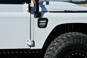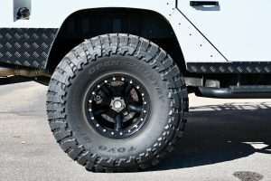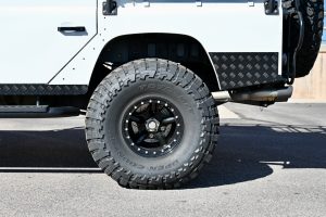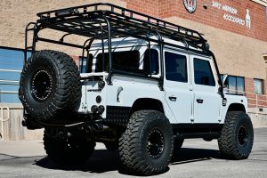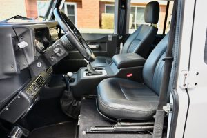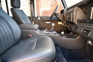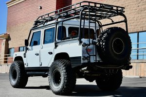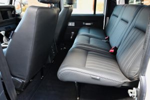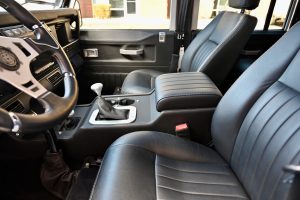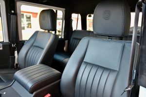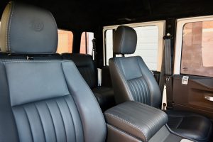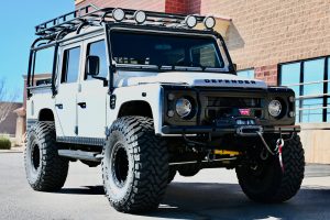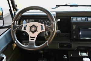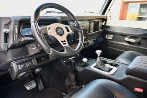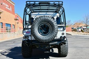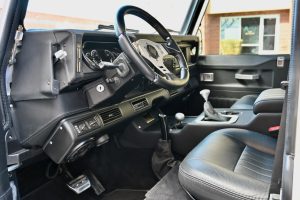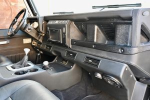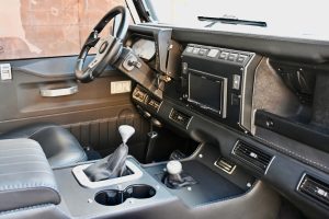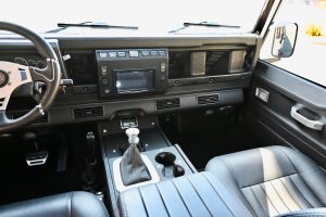 When you open the driver’s door, you will find beautiful handmade custom gray leather interior, including a 2nd row bench seat, and 3rd row benches out back. Interior features include: heated leather seats up front, leather dashboard, custom leather center console w/ custom shifter, leather steering wheel, Alcantra custom headliner throughout, billet aluminum interior package, new privacy glass all around, sunroof, custom air-conditioning system w/ rear AC extension, power windows, Pioneer Double-DIN media system w/ touch screen (Apple CarPlay, Bluetooth & time alignment), Morel high-end speaker system (amplifier, sub-woofer, high & low tone speakers), remote locks w/ alarm system & custom original Land Rover remotes, and full premium carpeting throughout. This luxurious interior is not only beautiful, but it is super comfortable and highly functional in every way.