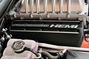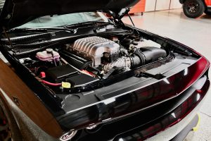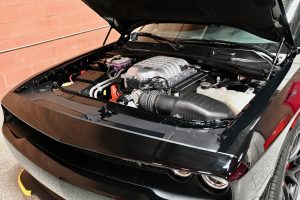 When you open the driver’s door, you will find an interior that looks 100% untouched throughout, with perfect black Premium Laguna Leather seats and that wonderful new car smell. Just like the rest of the car, the interior & the trunk area are like new. Pop open the hood, and nestled inside the spotless engine bay resides the Supercharged 6.2 Liter Hemi V8 engine, which produces 707 horsepower and 650 ft./lbs. of torque. The motor is linked to a Tremec TR-6060 6-speed manual transmission, the same transmission found in the Dodge Viper, which makes this car an absolute BLAST to drive! Being a paperwork fanatic like myself, the plethora of original documentation that comes with this car is my favorite thing about it. Literally every single piece of original paperwork & documentation from day one is present and will all go to the new owner (see photos of paperwork).