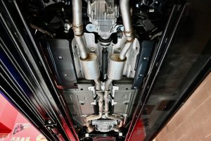 The factory Black paint is what shocked me the most when we received this car, as I always expect there to be blemishes with Black, even on a car with such super-low miles. The paint is in ‘like new’ condition from front to back with a glossy shine throughout, and absolutely no scratches, no chips, and no distractions whatsoever. The original owner kept a factory car cover on the car during the long-term storage which must have something to do with its outstanding condition. The black Hellcat wheels are also in absolutely flawless condition as well. I don’t know what else to say besides that the car looks like it just rolled off the factory line. Please look closely at the undercarriage/chassis photos to see how absolutely pristine this Hellcat truly is.